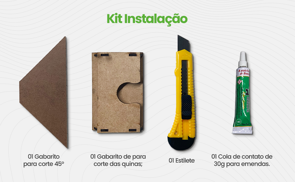 Este produto é feito de borracha sintética (EVA) específica para decoração e recebe uma laminação especial com fita de borda usada na indústria moveleira. O material possui alta resistência, qualidade e flexibilidade, adaptando-se a paredes levemente curvas.